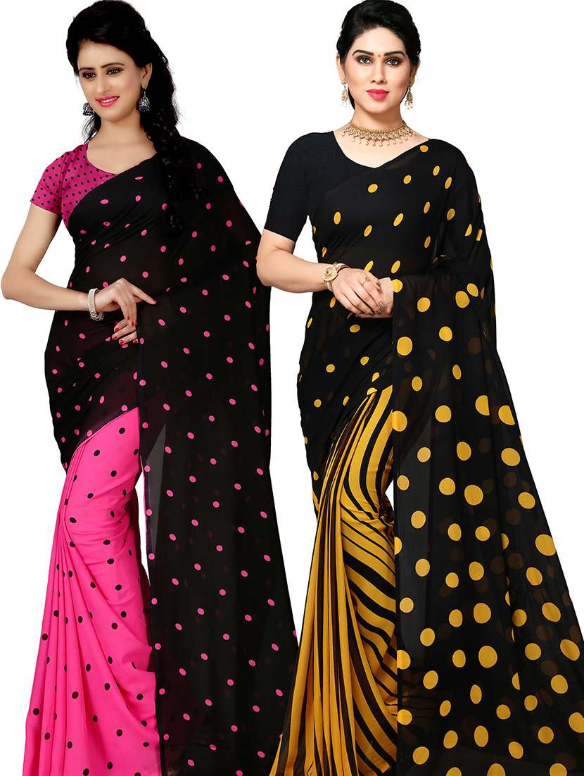 women pack of 2 casual wear combo sarees with blouse