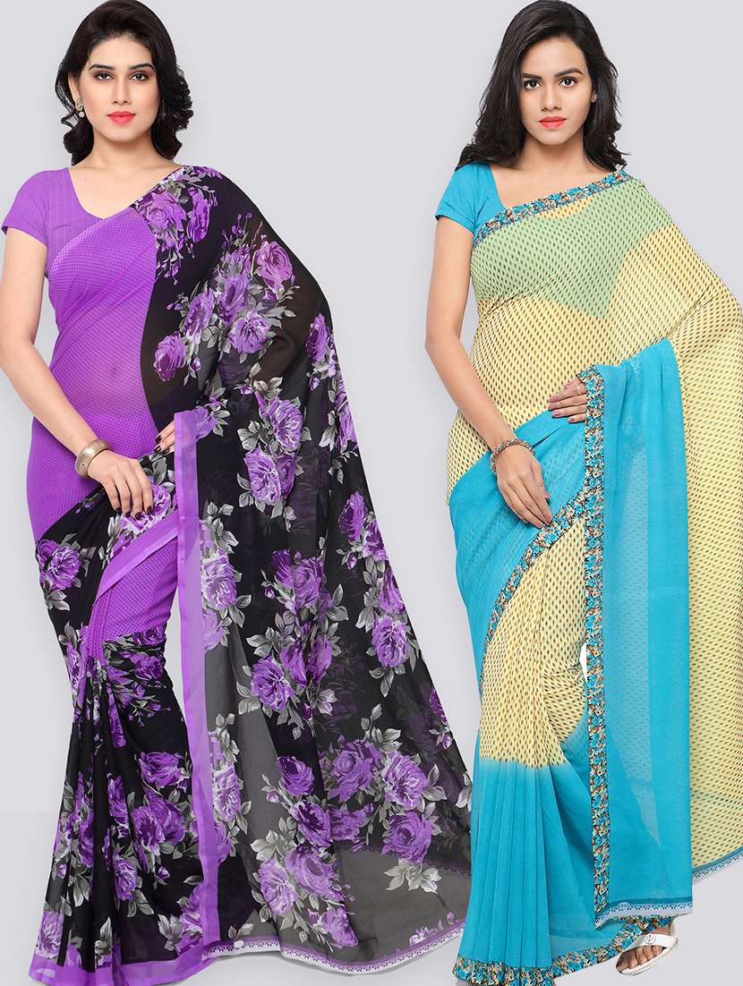 women pack of 2 casual wear combo sarees with blouse