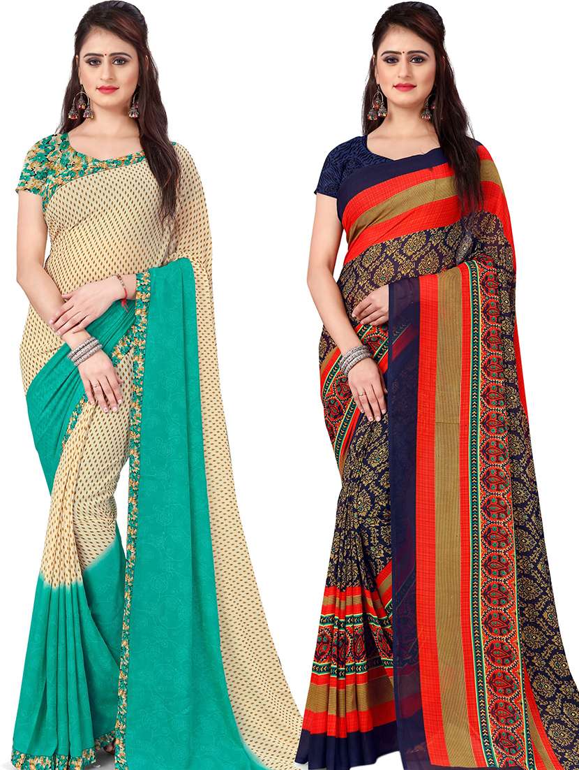 women pack of 2 casual wear combo sarees with blouse