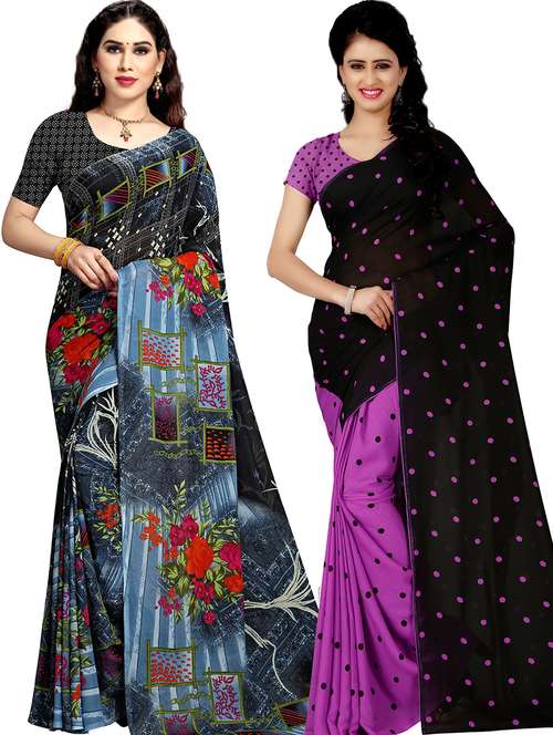 women pack of 2 casual wear combo sarees with blouse