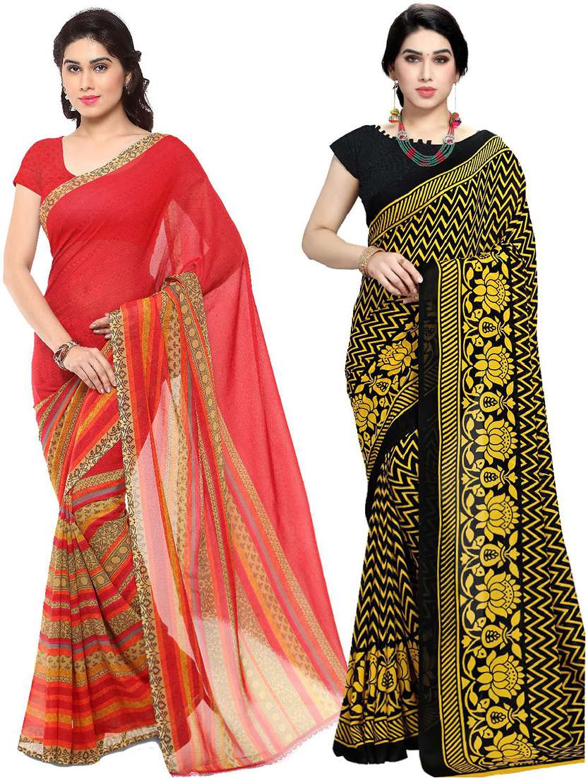 women pack of 2 casual wear combo sarees with blouse
