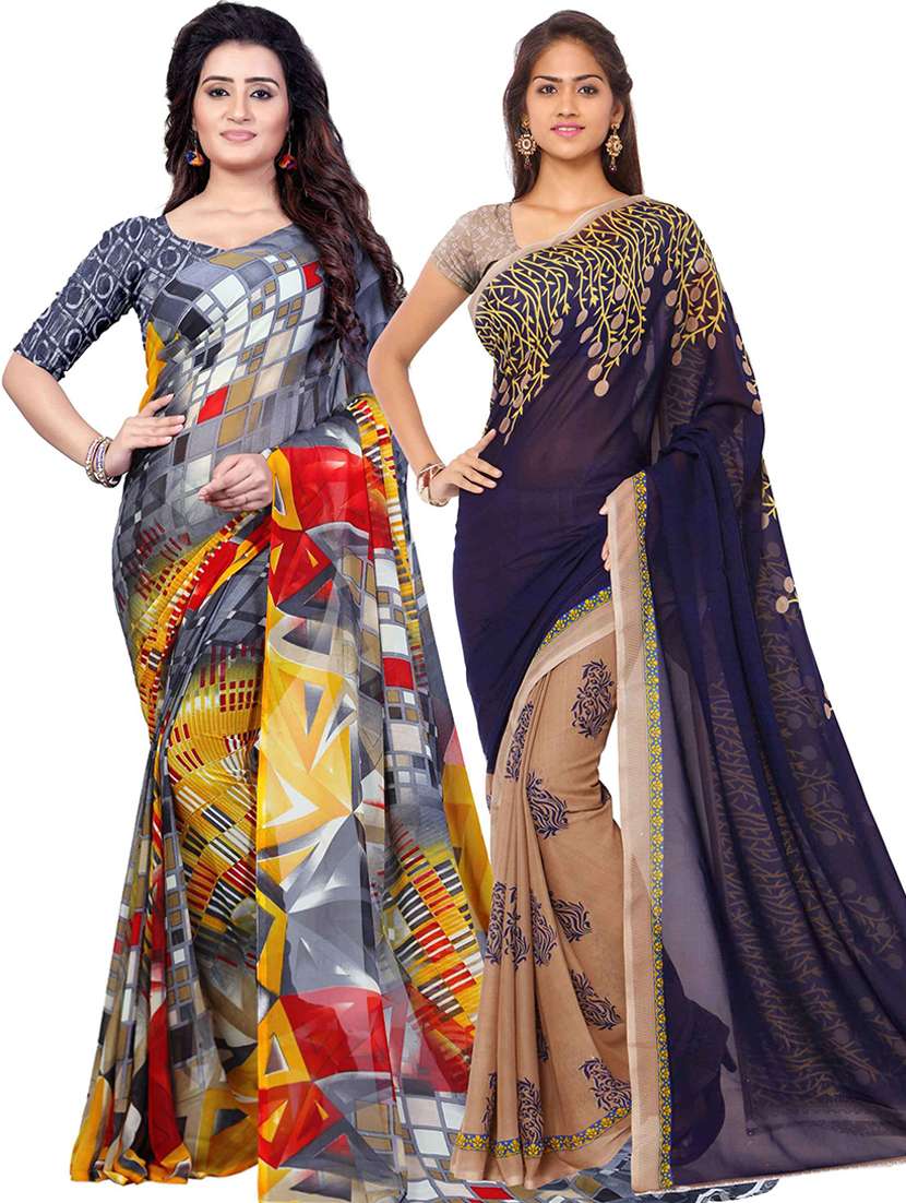 women pack of 2 casual wear combo sarees with blouse - 21478844 - Very Small Image - 1