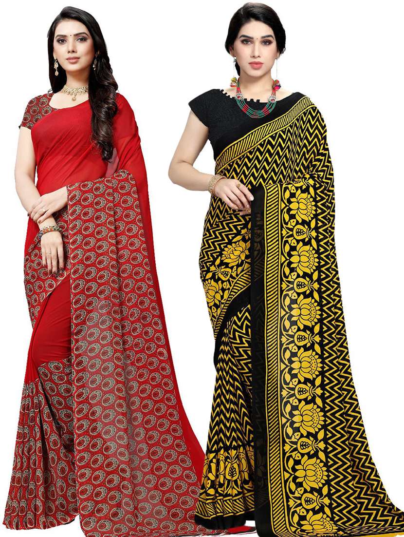 women pack of 2 casual wear combo sarees with blouse