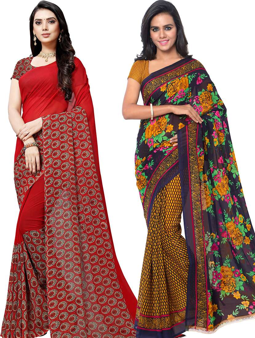 women pack of 2 casual wear combo sarees with blouse - 21478925 - Very Small Image - 1