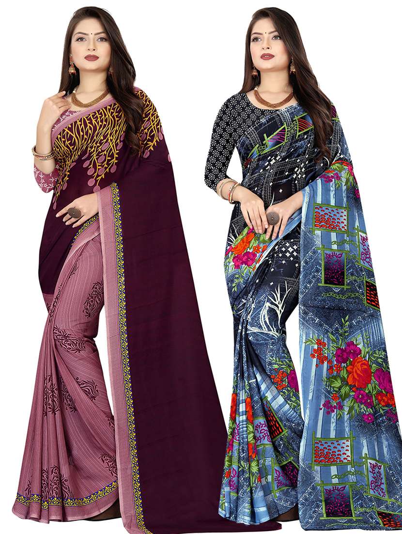 women pack of 2 casual wear combo sarees with blouse - 21479000 - Very Small Image - 1