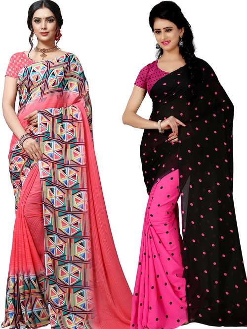 women pack of 2 casual wear sarees with blouse - 21479052 - Very Small Image - 1