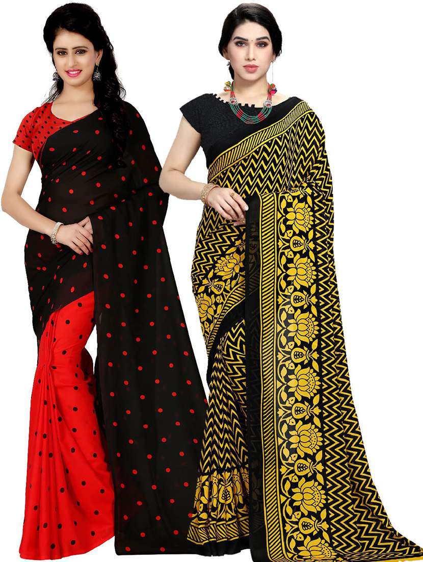 women pack of 2 casual wear combo sarees with blouse