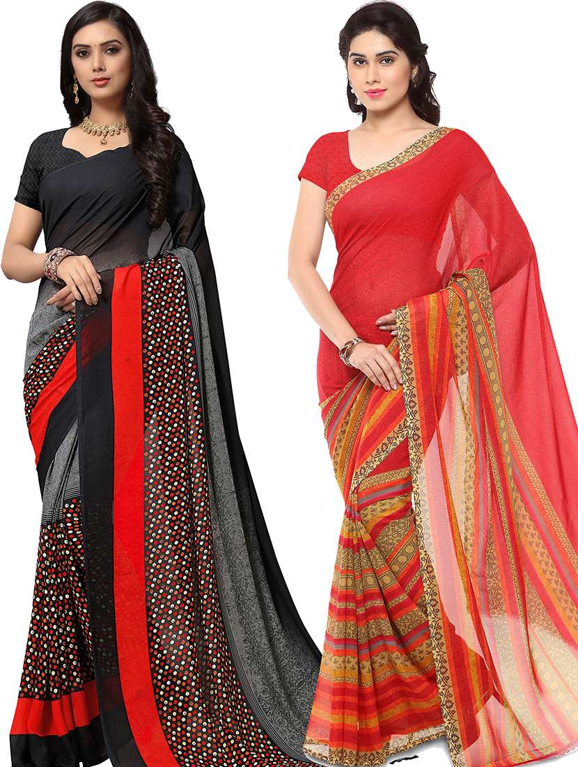 women pack of 2 casual wear combo sarees with blouse