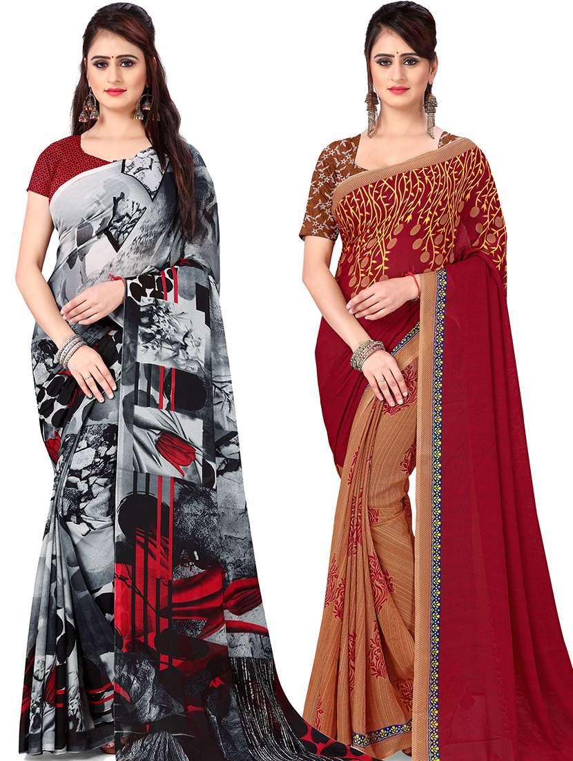 women pack of 2 casual wear sarees with blouse