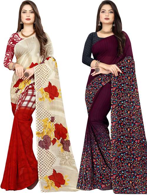 women pack of 2 casual wear combo sarees with blouse - 21479569 - Very Small Image - 1