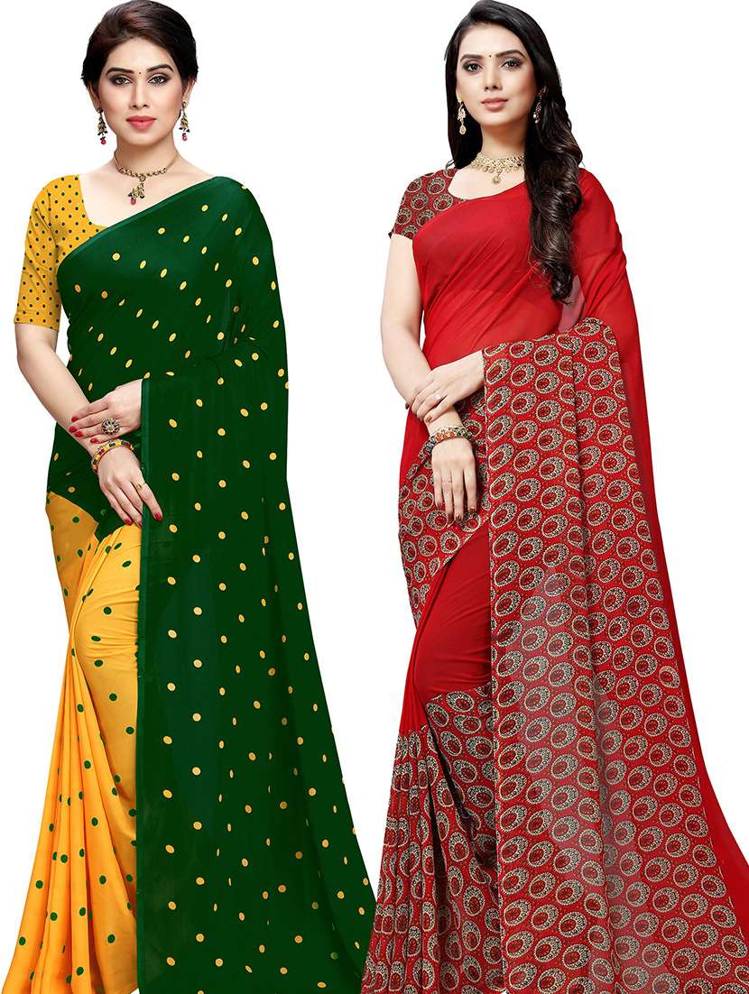women pack of 2 casual wear combo sarees with blouse