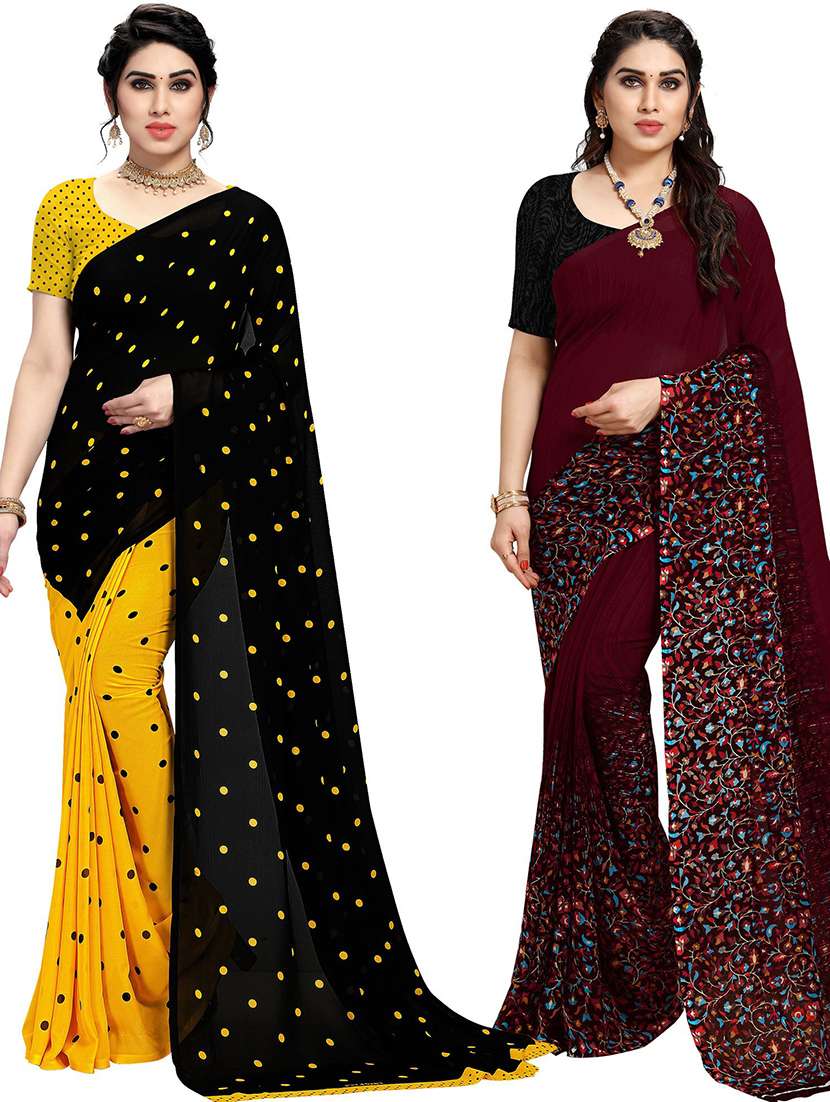 women pack of 2 casual wear combo sarees with blouse