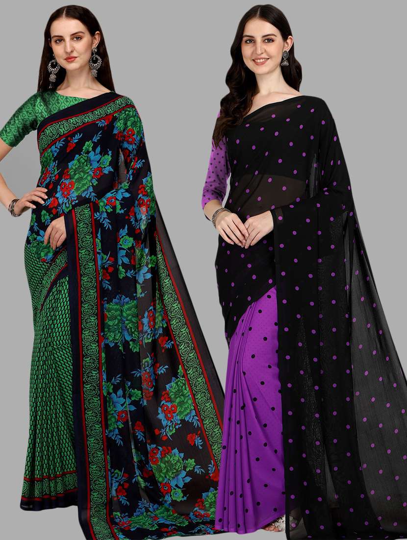 women pack of 2 casual wear combo sarees with blouse