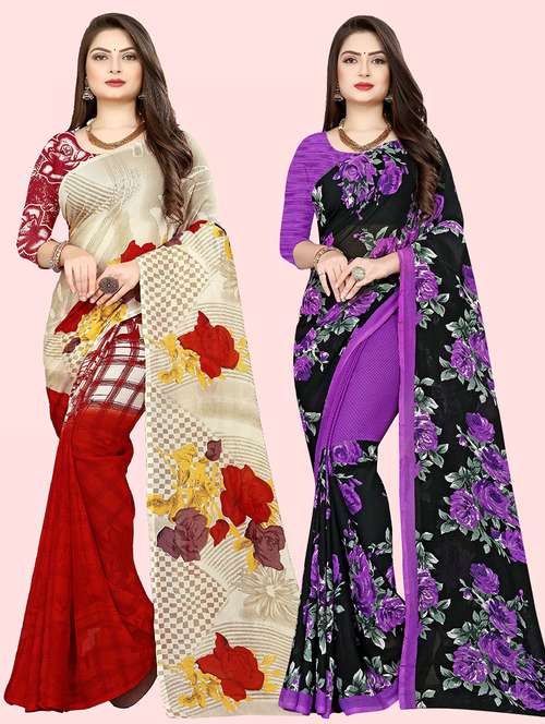 women pack of 2 casual wear combo sarees with blouse