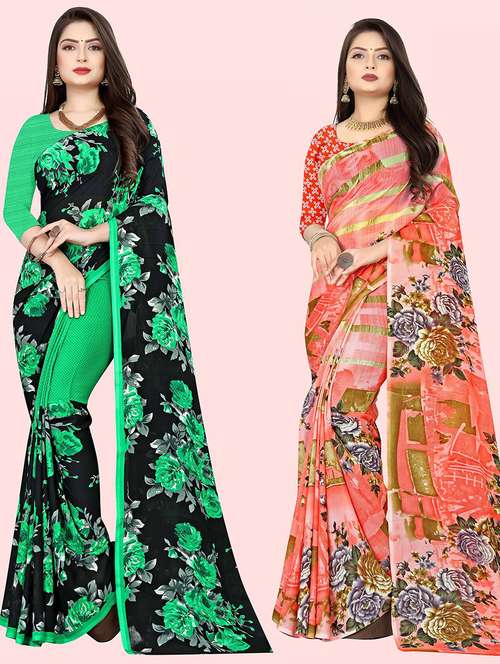 women pack of 2 casual wear combo sarees with blouse - 21479916 - Very Small Image - 1