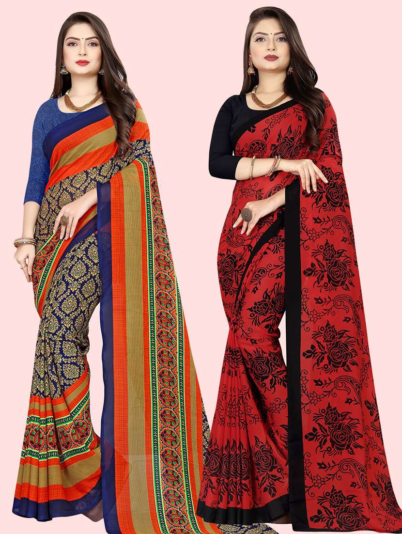 women pack of 2 casual wear combo sarees with blouse