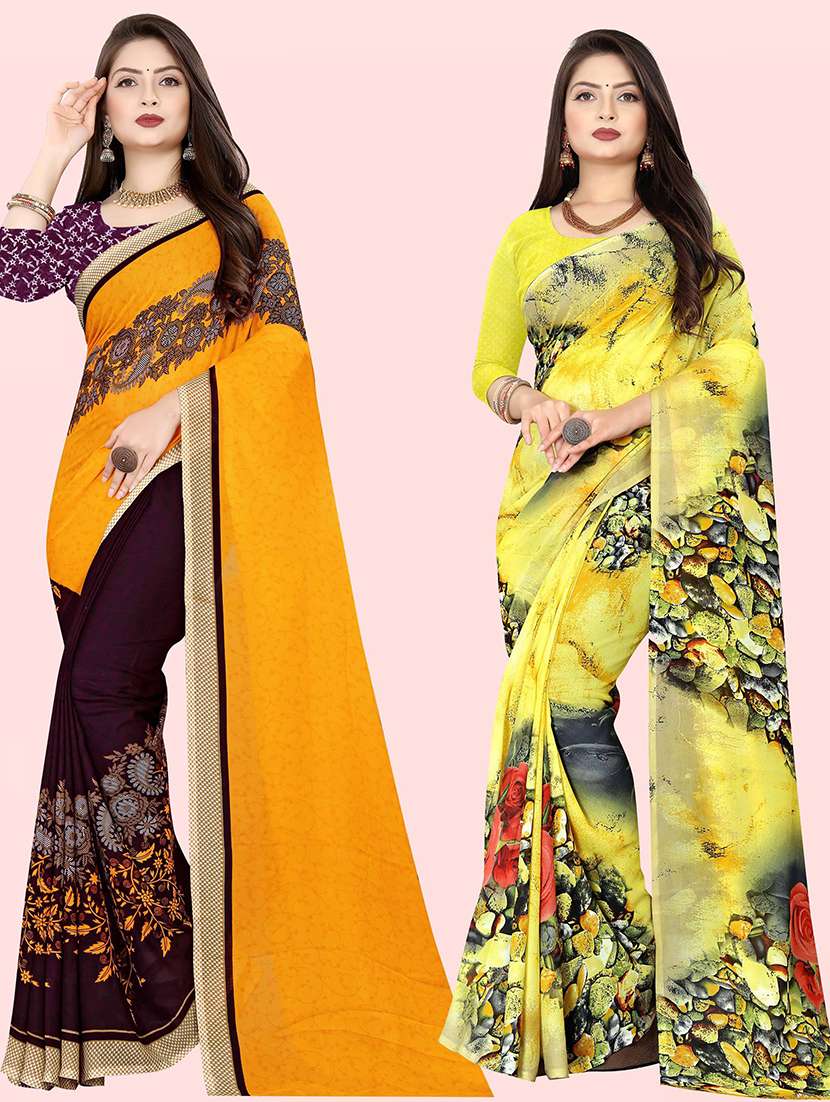 women pack of 2 casual wear combo sarees with blouse - 21479968 - Very Small Image - 1