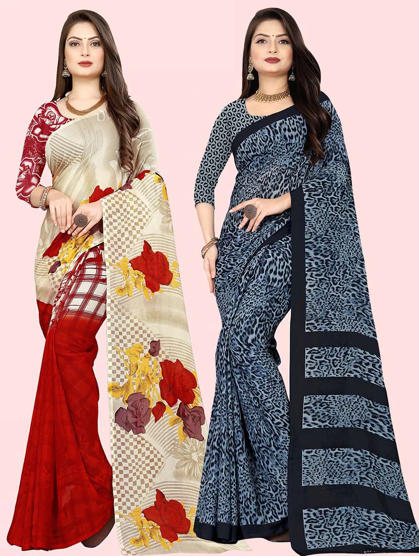 women pack of 2 casual wear combo sarees with blouse - 21479984 - Very Small Image - 1