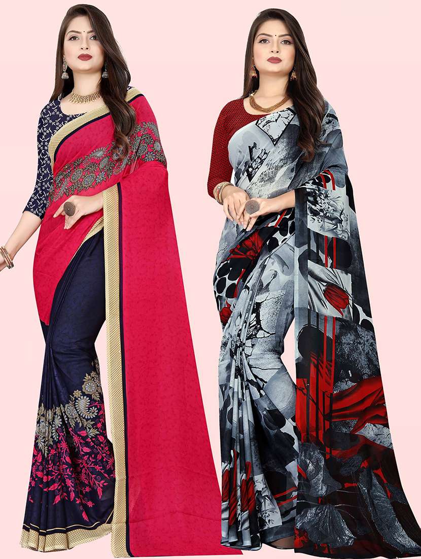 women pack of 2 casual wear sarees with blouse - 21479990 - Very Small Image - 1