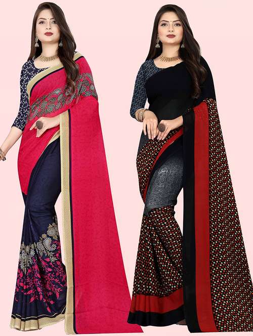 women pack of 2 casual wear sarees with blouse