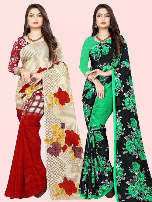 women pack of 2 casual wear combo sarees with blouse - 21480077 - Very Small Image - 1