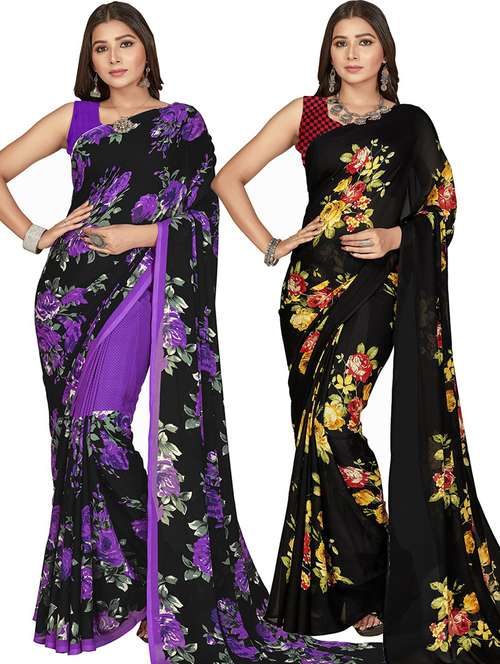 women pack of 2 casual wear combo sarees with blouse