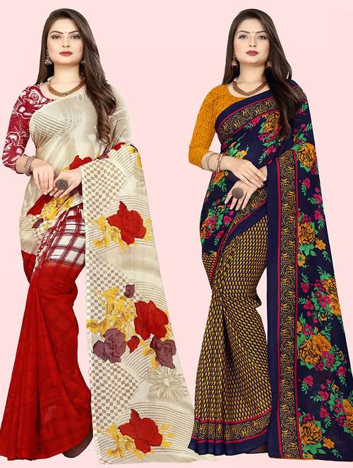 women pack of 2 casual wear sarees with blouse - 21480250 - Very Small Image - 1