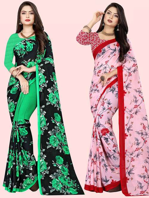 women pack of 2 casual wear sarees with blouse
