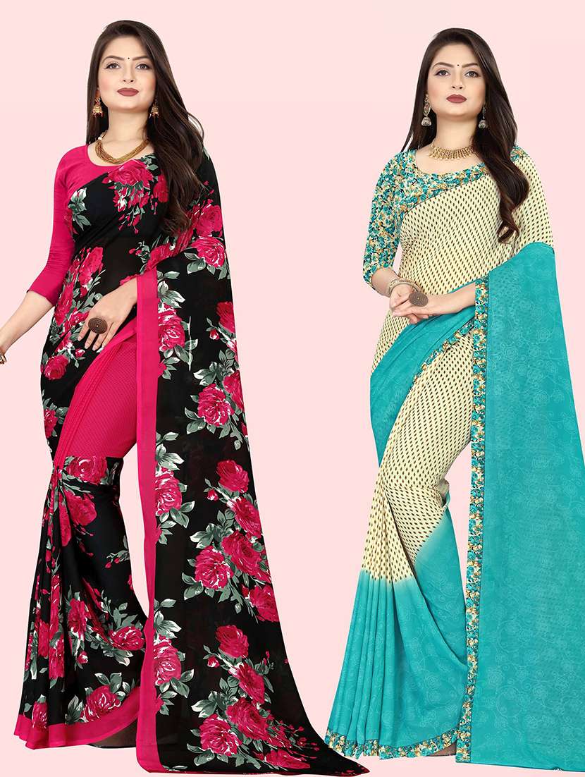 women pack of 2 casual wear sarees with blouse