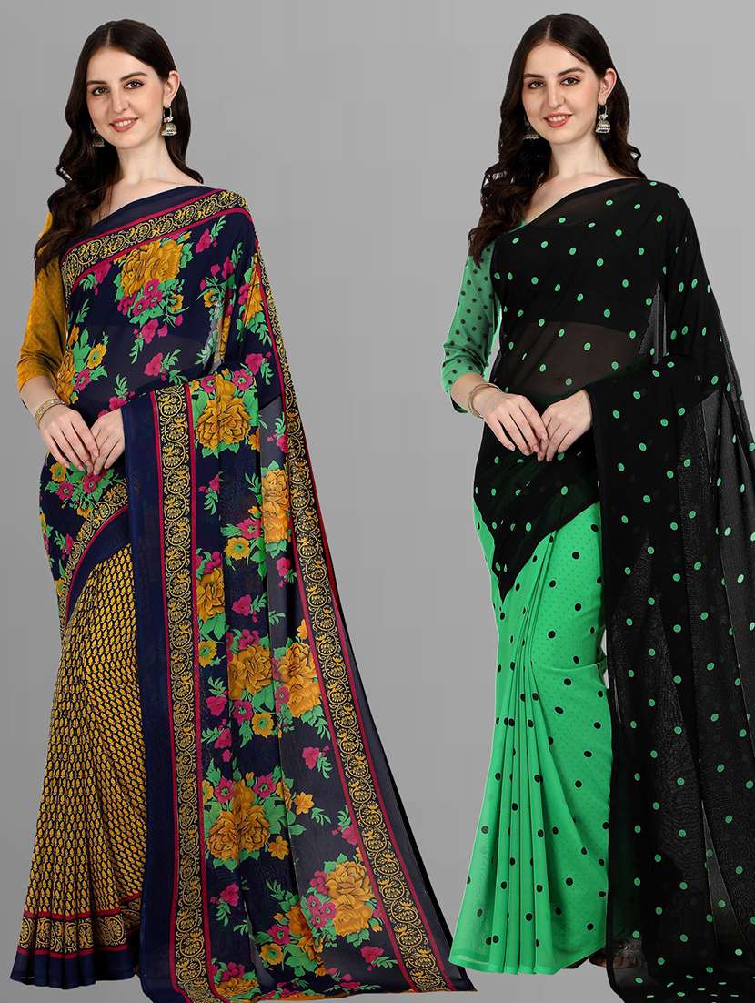 women pack of 2 casual wear sarees with blouse