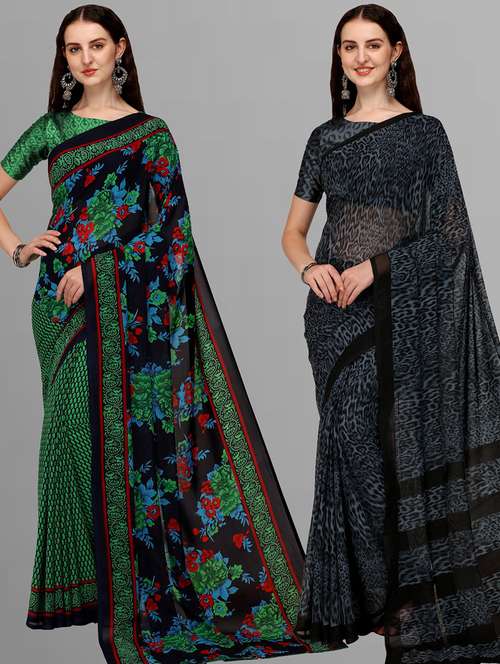 women pack of 2 printed casual wear sarees with blouse