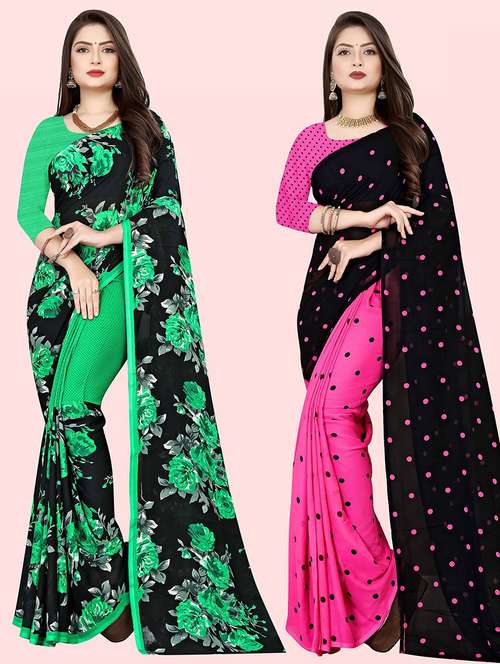 women pack of 2 casual wear combo sarees with blouse - 21480470 - Very Small Image - 1