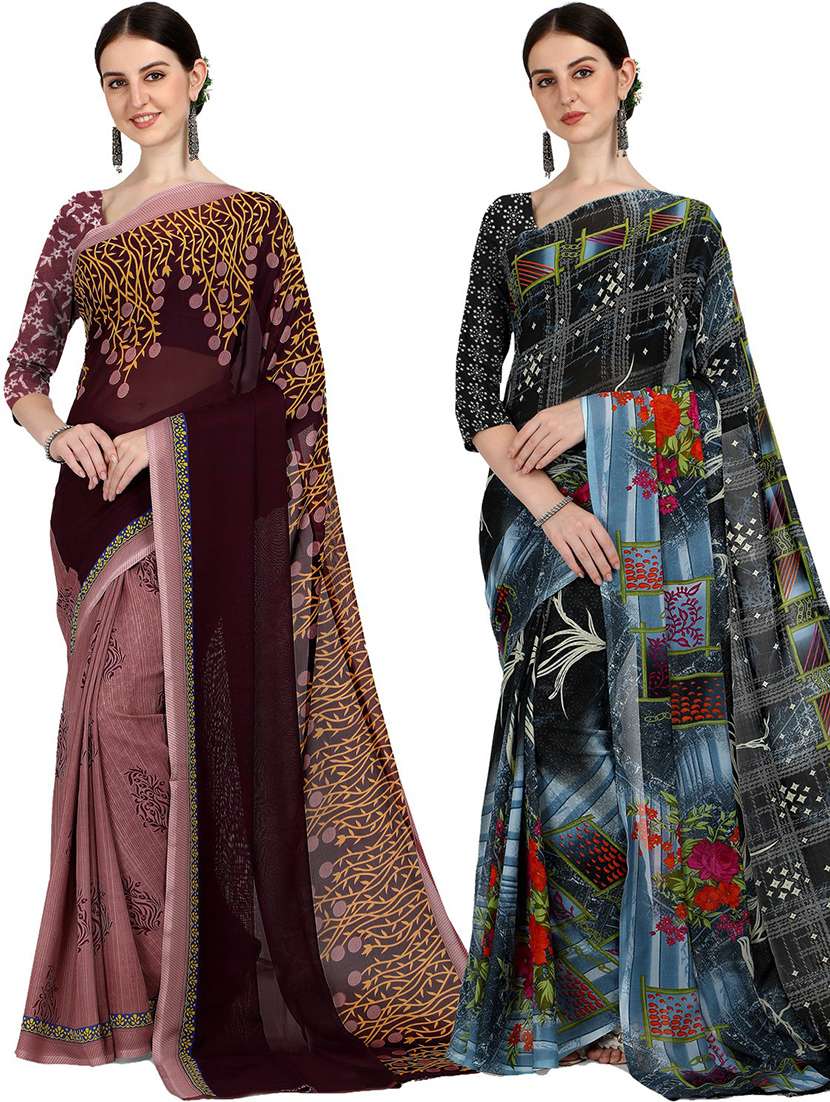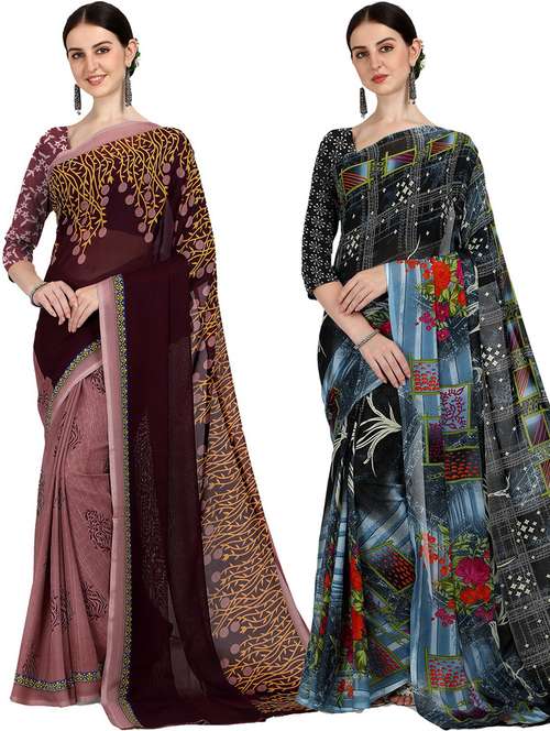 women pack of 2 casual wear combo sarees with blouse