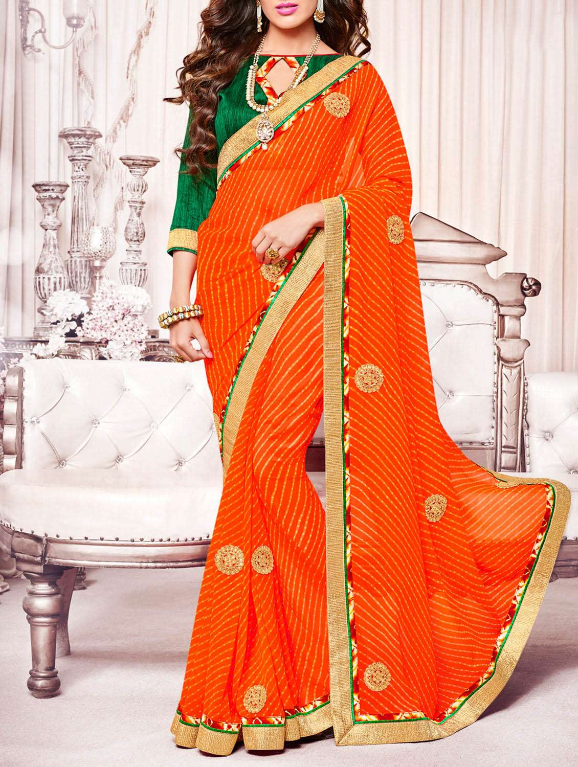 - » orange georgette embroidered saree with blouse