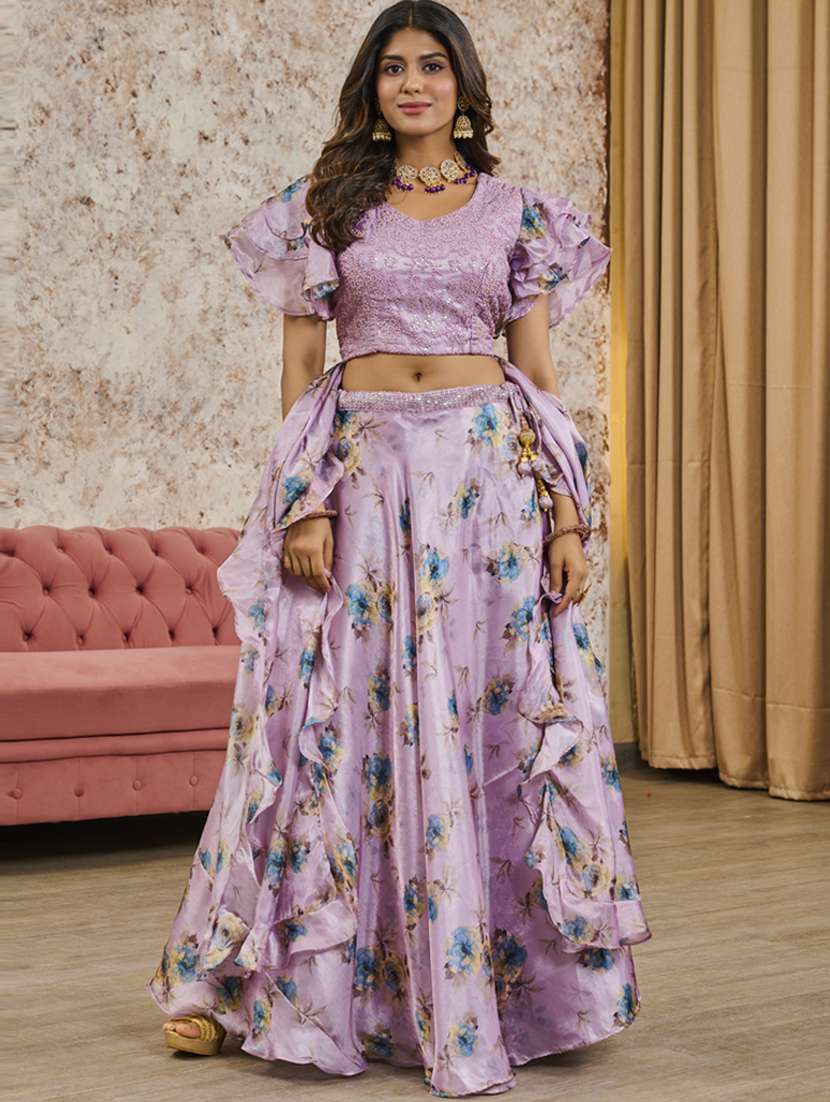 women lavender stitched lehenga choli with dupatta - 20446494 - Very Small Image - 1