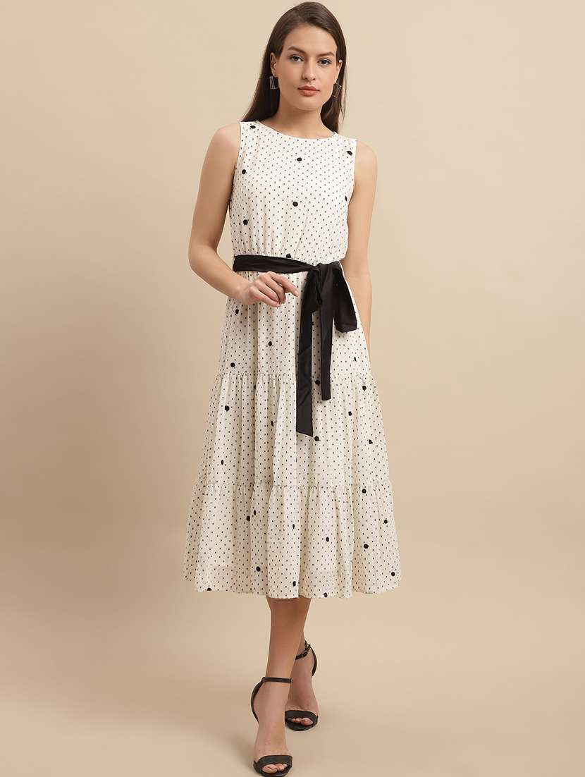 optic white self design tiered dress