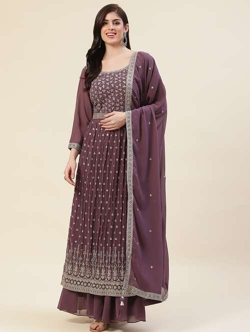 - Find gorgeous sets of ethnic wears in trending designs in purple colors suitable for a number of occasions.