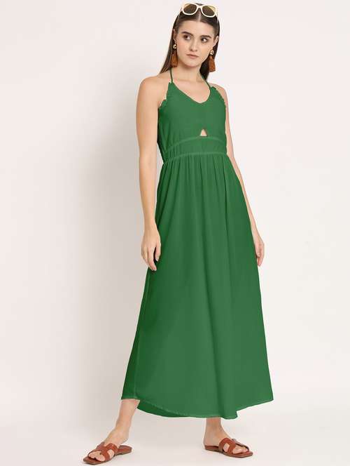 • Looking for some awesome collection of dresses? Well, lay your hands on  this dress from Moomaya and also get the option of choosing from green colour.