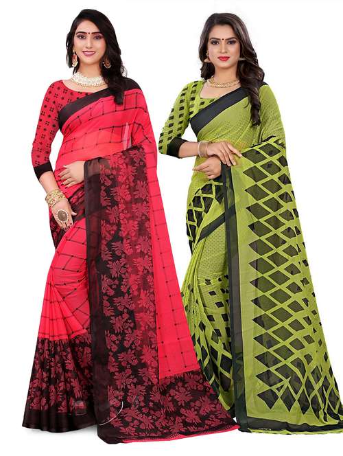 - » combos pack of 2 printed sarees with blouse