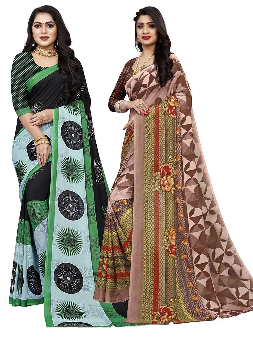 pack of 2 multi colored combo saree with blouse - 21300478 - Very Small Image - 1