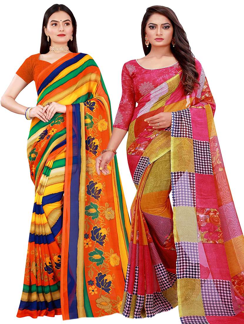 pack of 2 printed saree with blouse - 21396516 - Very Small Image - 1