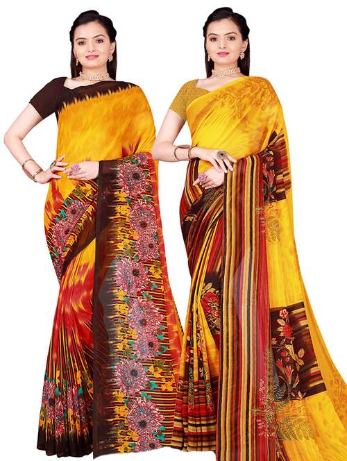 pack of 2 printed saree with blouse - 21397201 - Very Small Image - 1