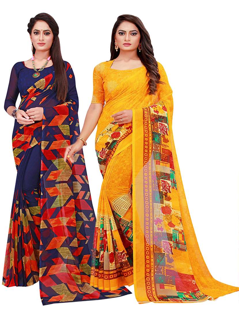 women pack of 2 casual wear combo sarees with blouse - 21455572 - Very Small Image - 1