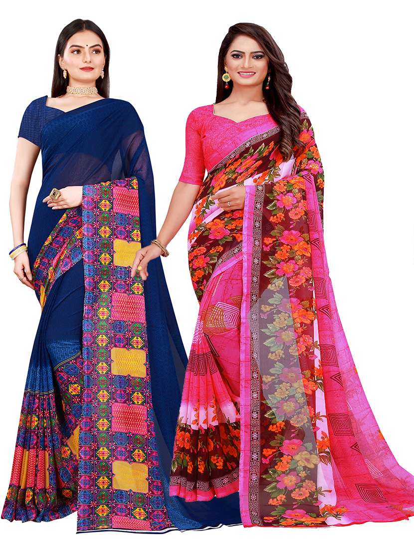 women pack of 2 casual wear combo sarees with blouse