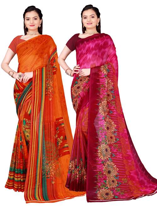 women pack of 2 casual wear combo sarees with blouse - 21456349 - Very Small Image - 1