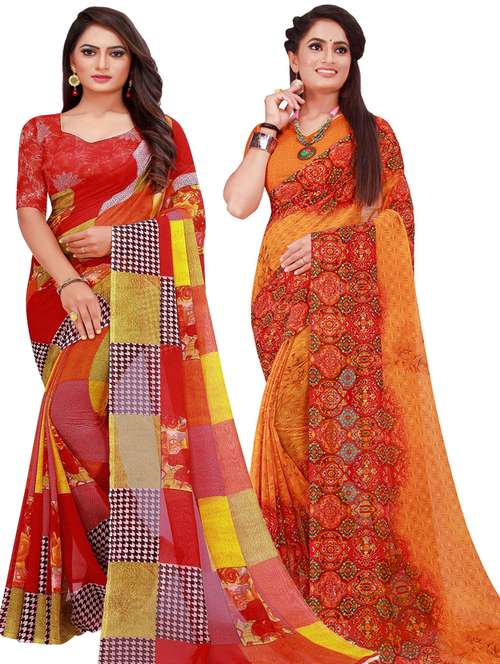 women pack of 2 casual wear combo sarees with blouse - 21456672 - Very Small Image - 1