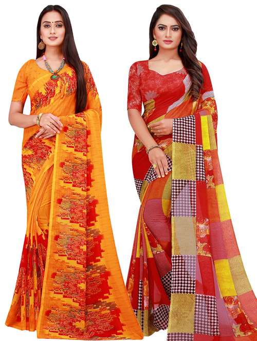 women pack of 2 casual wear combo sarees with blouse