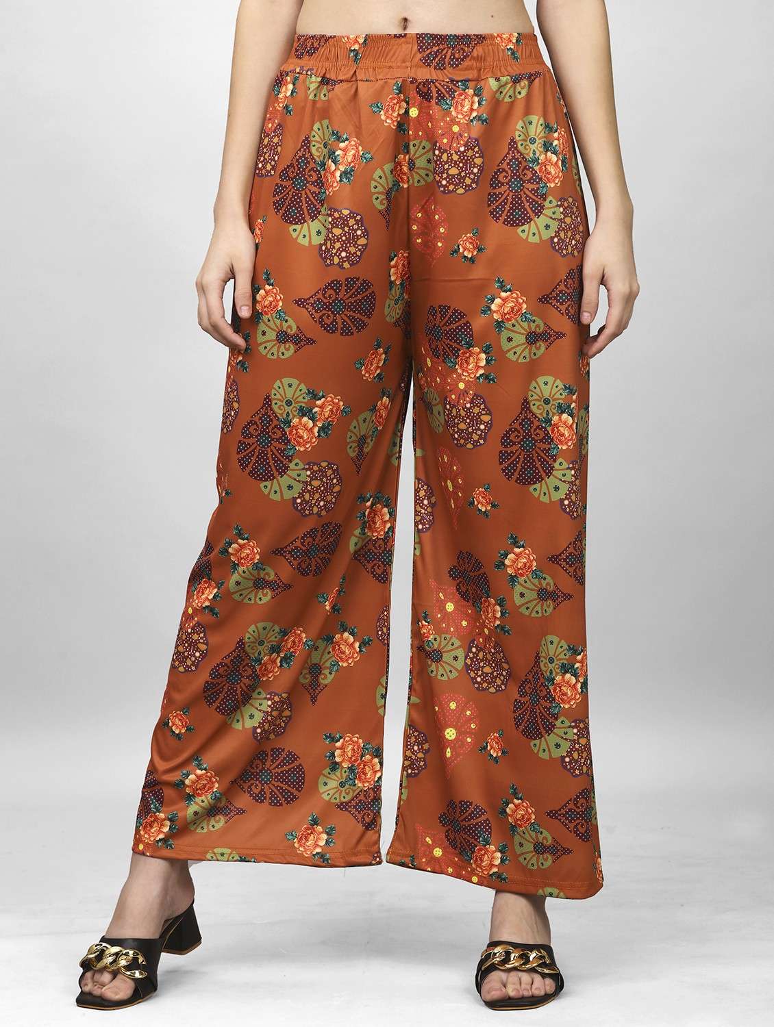 - » women printed mid rise flared palazzo