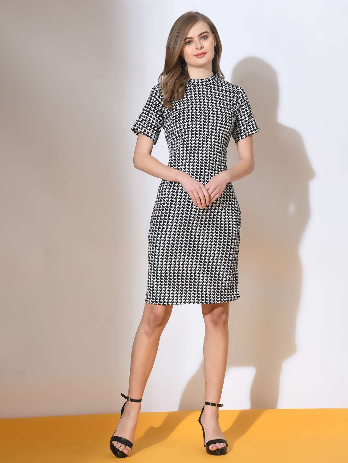 women white & black printed bodycon dress