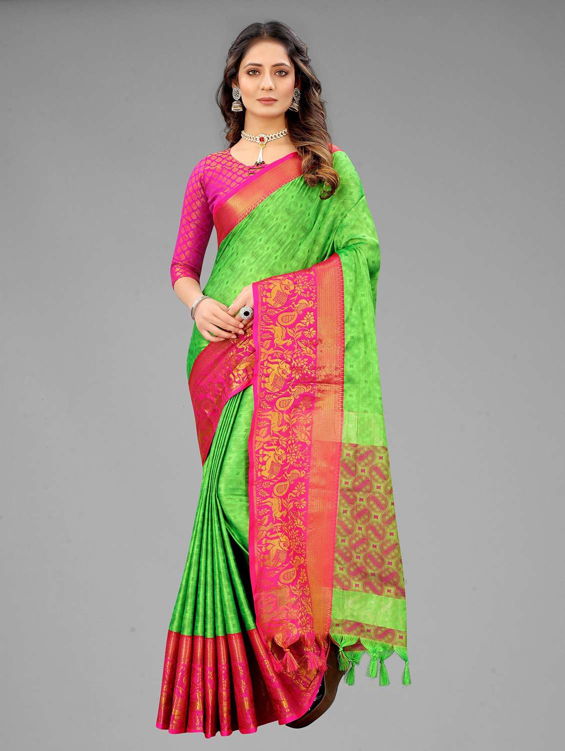 - » women's self design green colored saree with blouse
